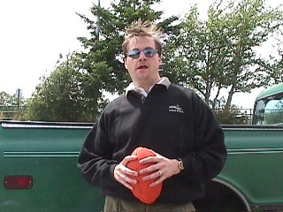 | Jeff playing catch with Matt | Kristy and seagull nest with chicks |